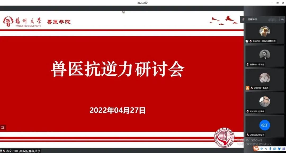 为庆祝世界兽医日,响应中国兽医协会发布的《关于开展2022年世界兽医日主题活动的倡议》,扬州大学兽医学院举行兽医抗逆力研讨会。