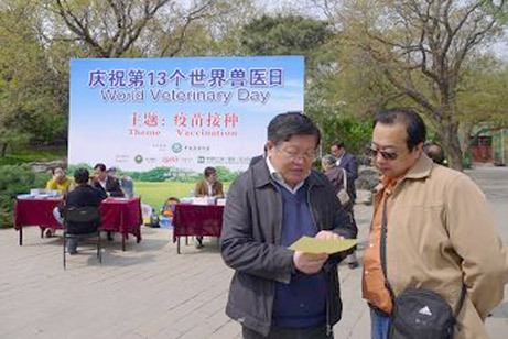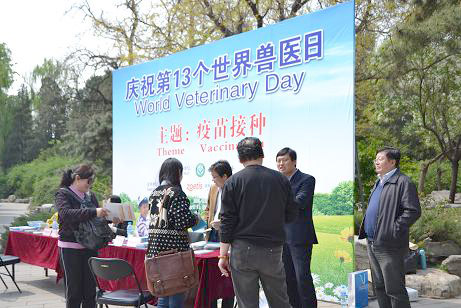 自2001年世界兽医协会决定将每年4月的第4个周六定为“世界兽医日”以来,各国兽医组织积极响应,每年都在世界兽医日期间举办各类宣传活动,为推动公众健康、食品安全和环境卫生工作发挥了积极的作用。今年4月27日是第13个世界兽医日,为庆祝世界兽医日,中国兽医协会于4月27日根据“疫苗接种”的主题,在北京动物园组织举行了疫苗接种知识科普宣传活动。