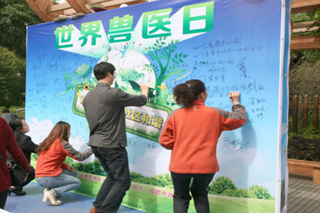我会高度重视世界兽医日宣传活动,根据今年“关注动物福利”的活动主题,于4月26日在成都市动物园开展了世界兽医日宣传活动。这次活动由四川省兽医协会小动物分会主办,成都市动物园和成都市动物疫控中心协办,成都天缘宠物医院、成都源康动物医院、龙泉康复宠物医院、高新区观爱动物医院,英威公司等多家单位参加了世界兽医日宣传活动。在活动中,一是邀请了宠物医院专家和兽医技术人员对前来咨询宠物有关问题的市民进行了解答。二是发放了宣传资料,提高市民对兽医职业的认识和了解狂犬病等动物疫病的防治知识。三是通过签名赠礼活动,呼吁全社会改善动物生存环境,提高动物福利的意识。