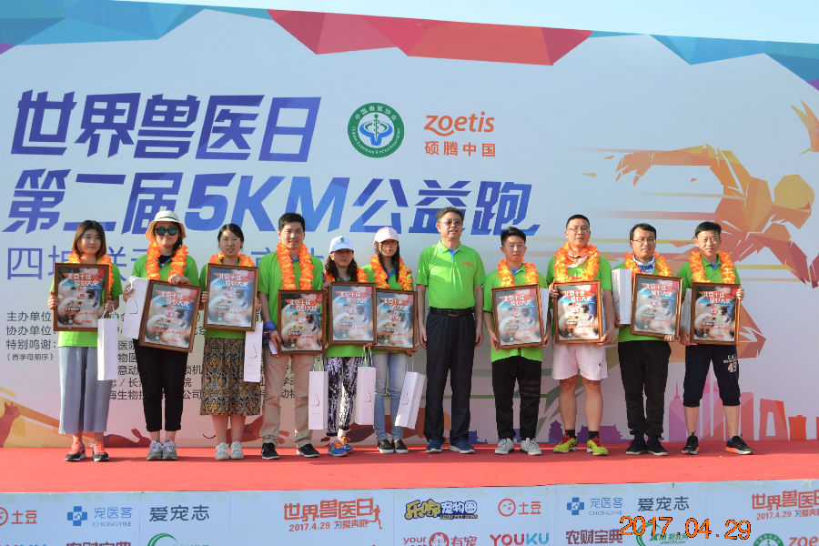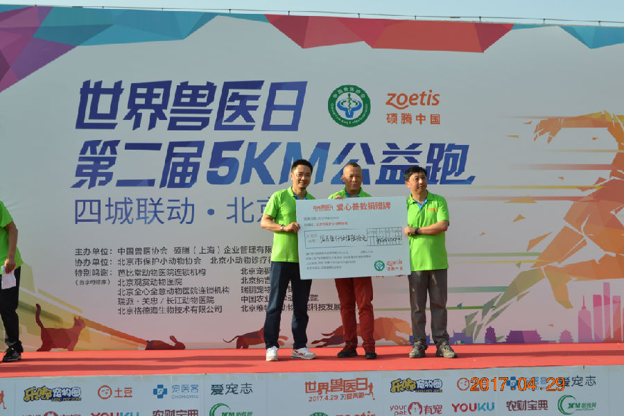 2017年4月29日,为庆祝第十七个世界兽医日的到来,中国兽医协会与硕腾中国携手在北京、上海、广州、成都四城同时举行了第二届“世界兽医日,为爱奔跑”5K跑大型公益活动。